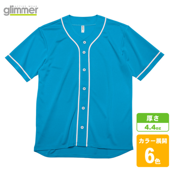 ドライ機能つきでサラリと着られるベースボールシャツ。上記のアイテムよりもカラー展開は少ないですが、やや厚手で丈夫です。