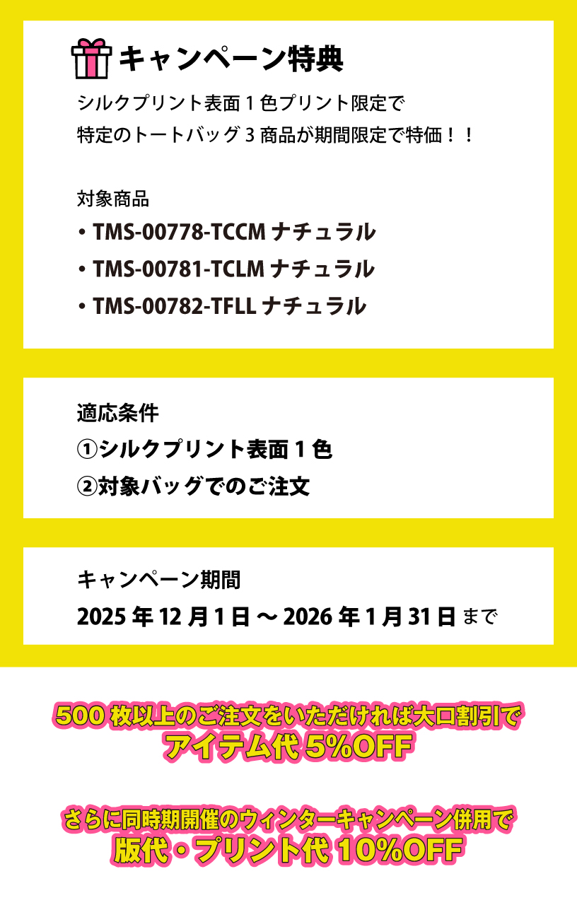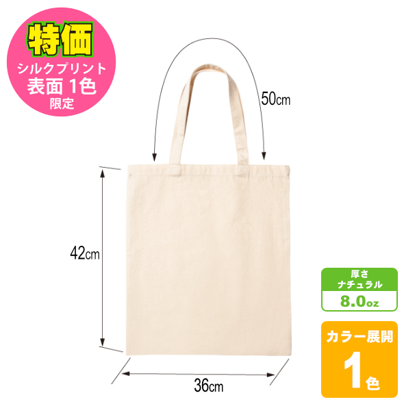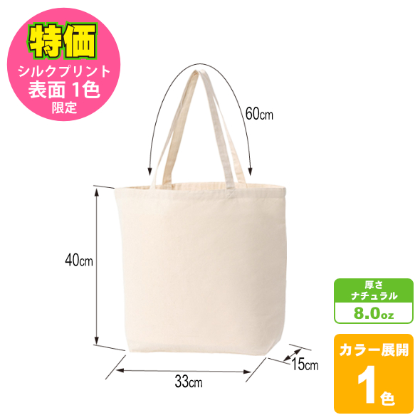 【特価:表面シルクプリント1色限定】キャンバストートバッグ(M)