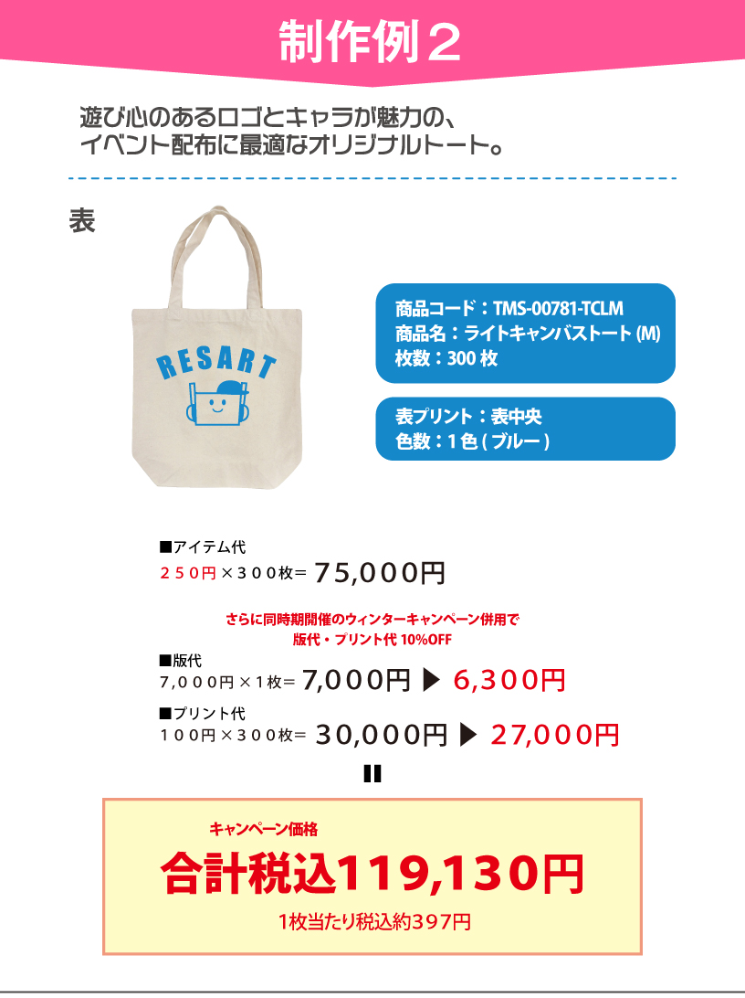 【特価:表面シルクプリント1色限定】ライトキャンバストート(M)
