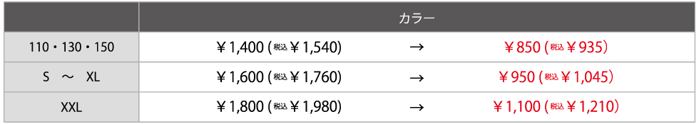 転写プリント料金