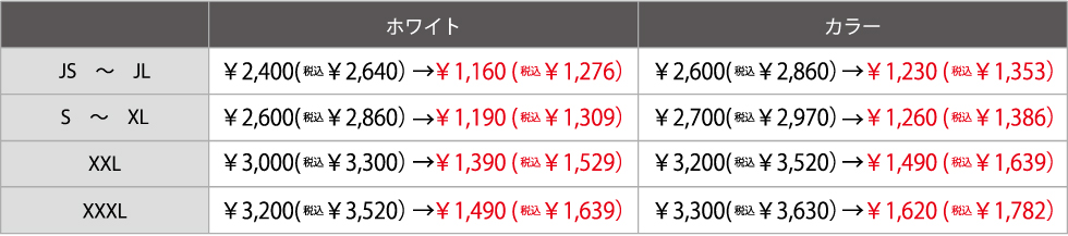 ※JS-JLサイズは脇縫い仕様です。